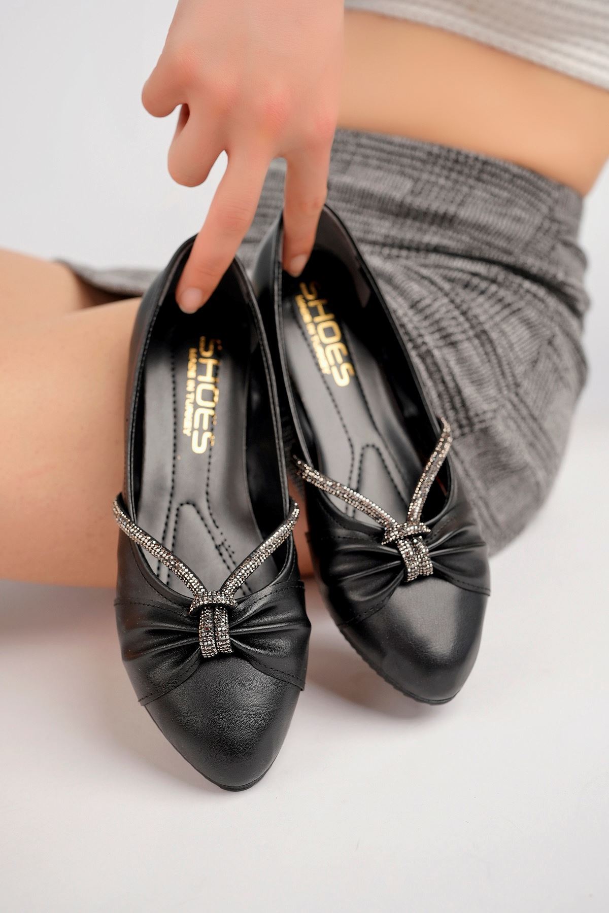 Taşlı Siyah Ayakkabı