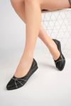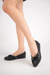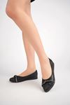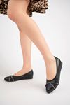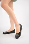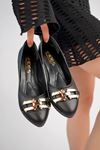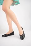 Dolgu Taban Önü Açık Siyah Cilt Kadın Ayakkabı