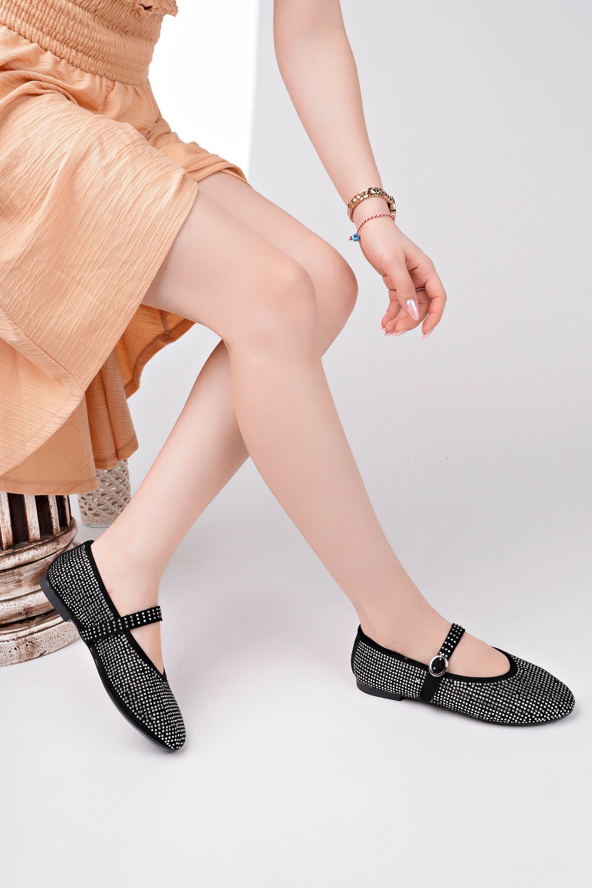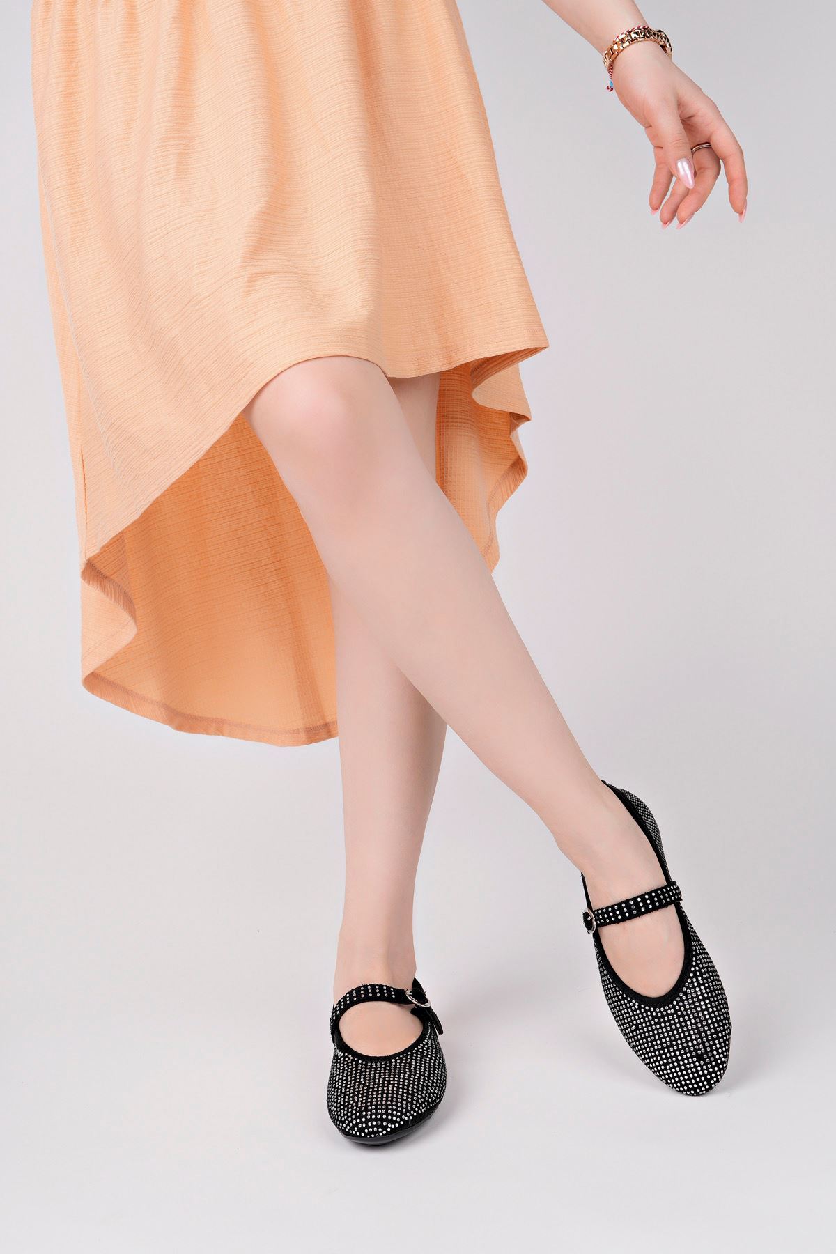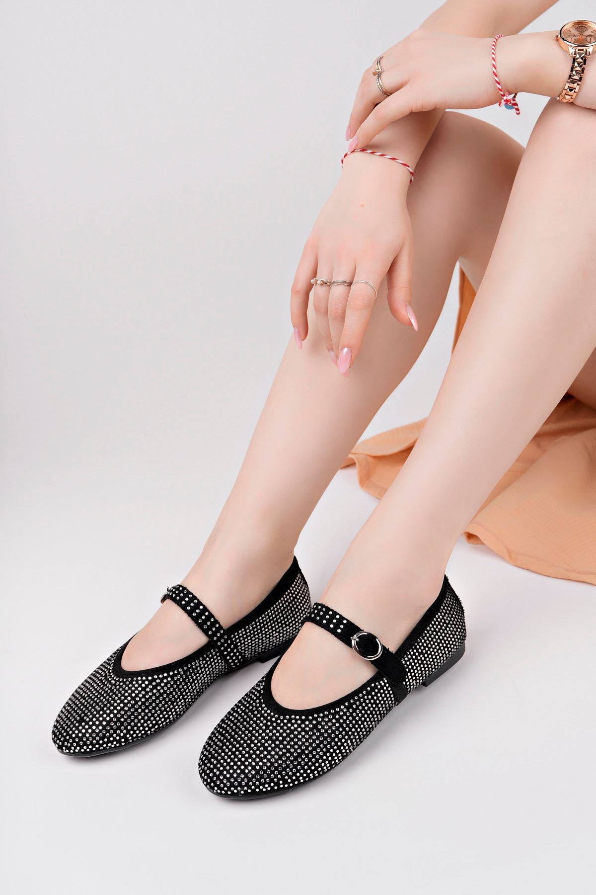 Dolgu Taban Siyah Cilt Kadın Ayakkabı