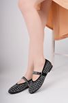 Dolgu Taban Lazerli Siyah Cilt Kadın Ayakkabı