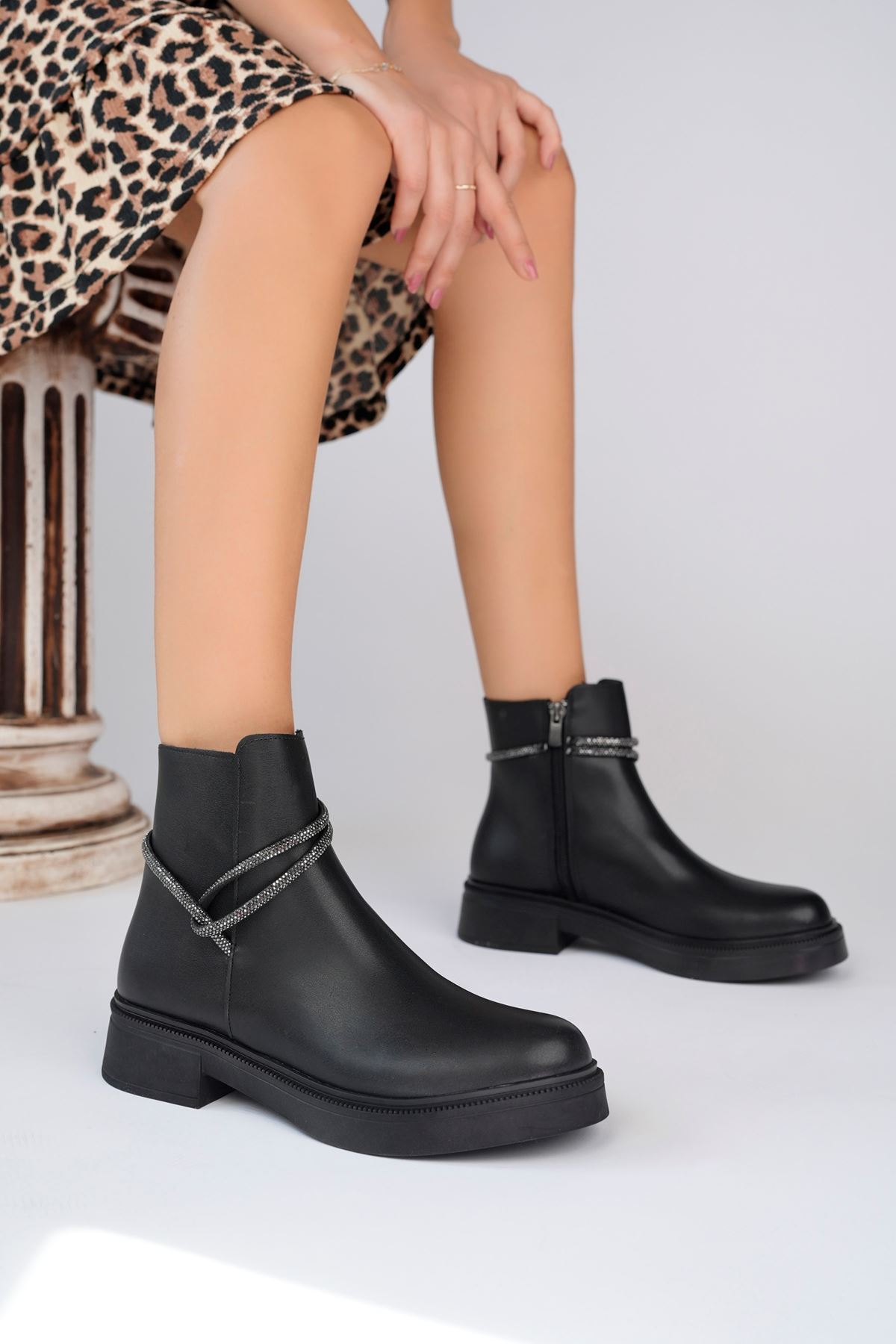 Taşlı Siyah Kadın Bot