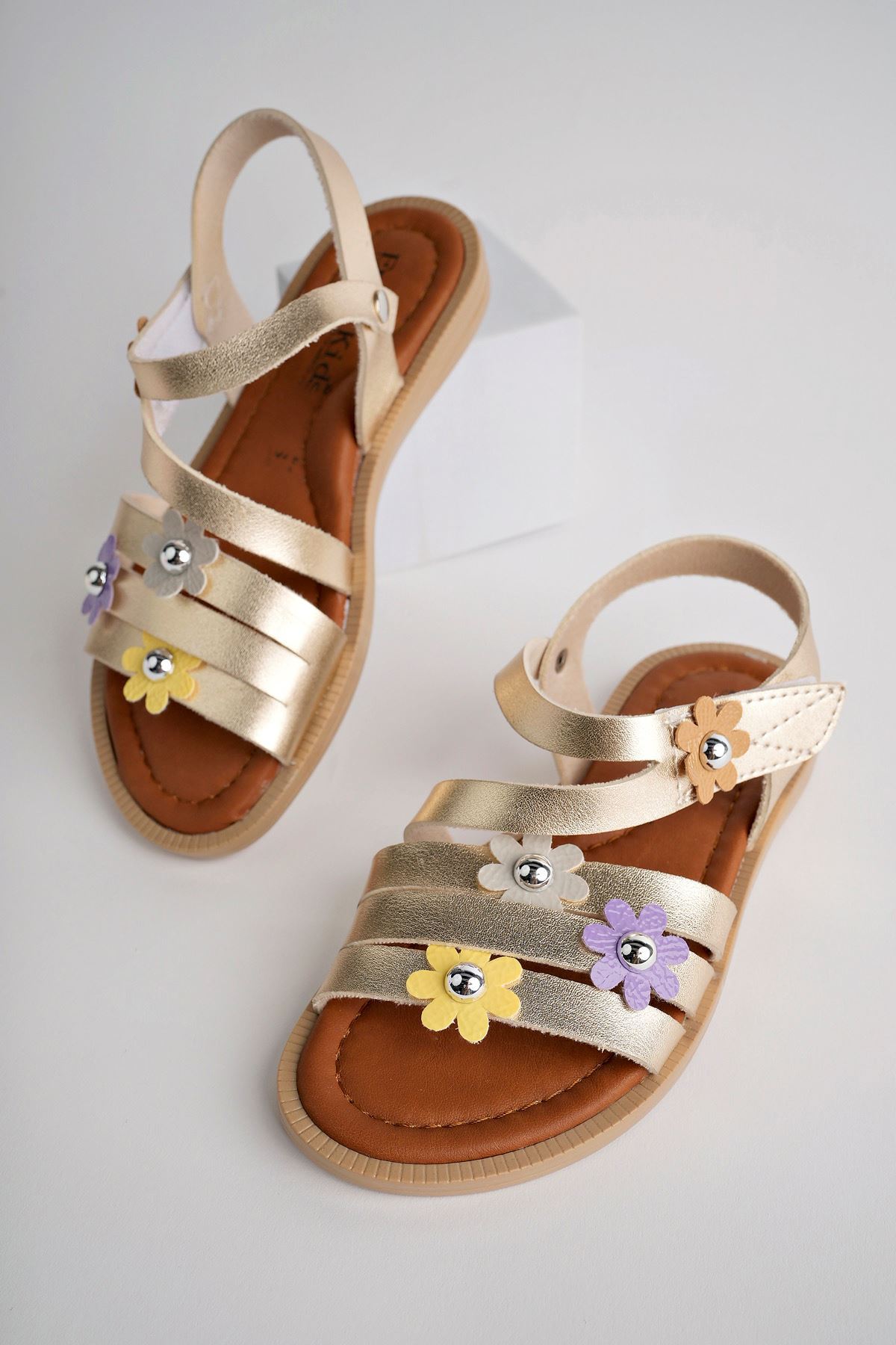 Termo Taban Çiçekli Altın Çocuk Sandalet