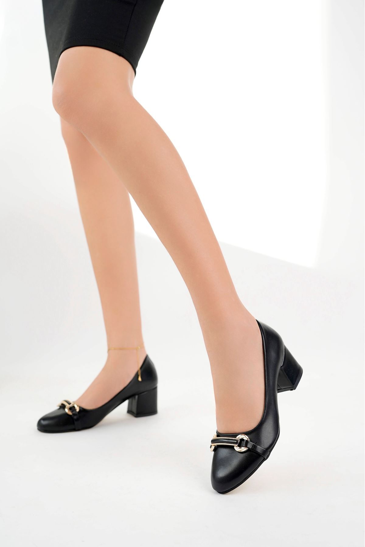 Tokalı Siyah Cilt Kadın Ayakkabı
