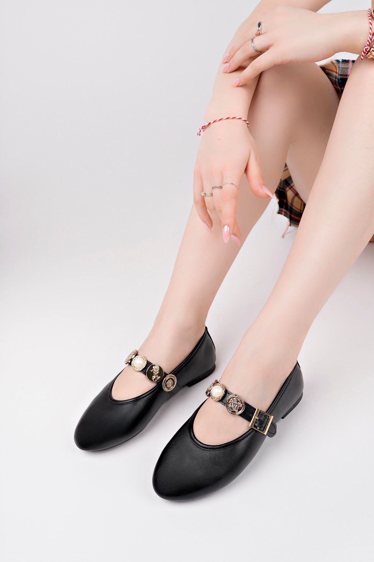 Tokalı Siyah Cilt Kadın Ayakkabı