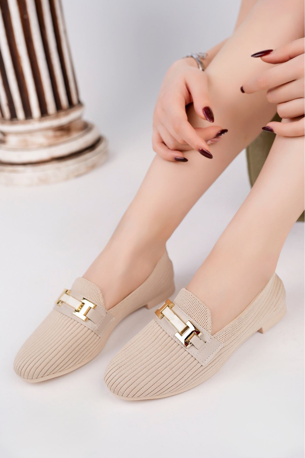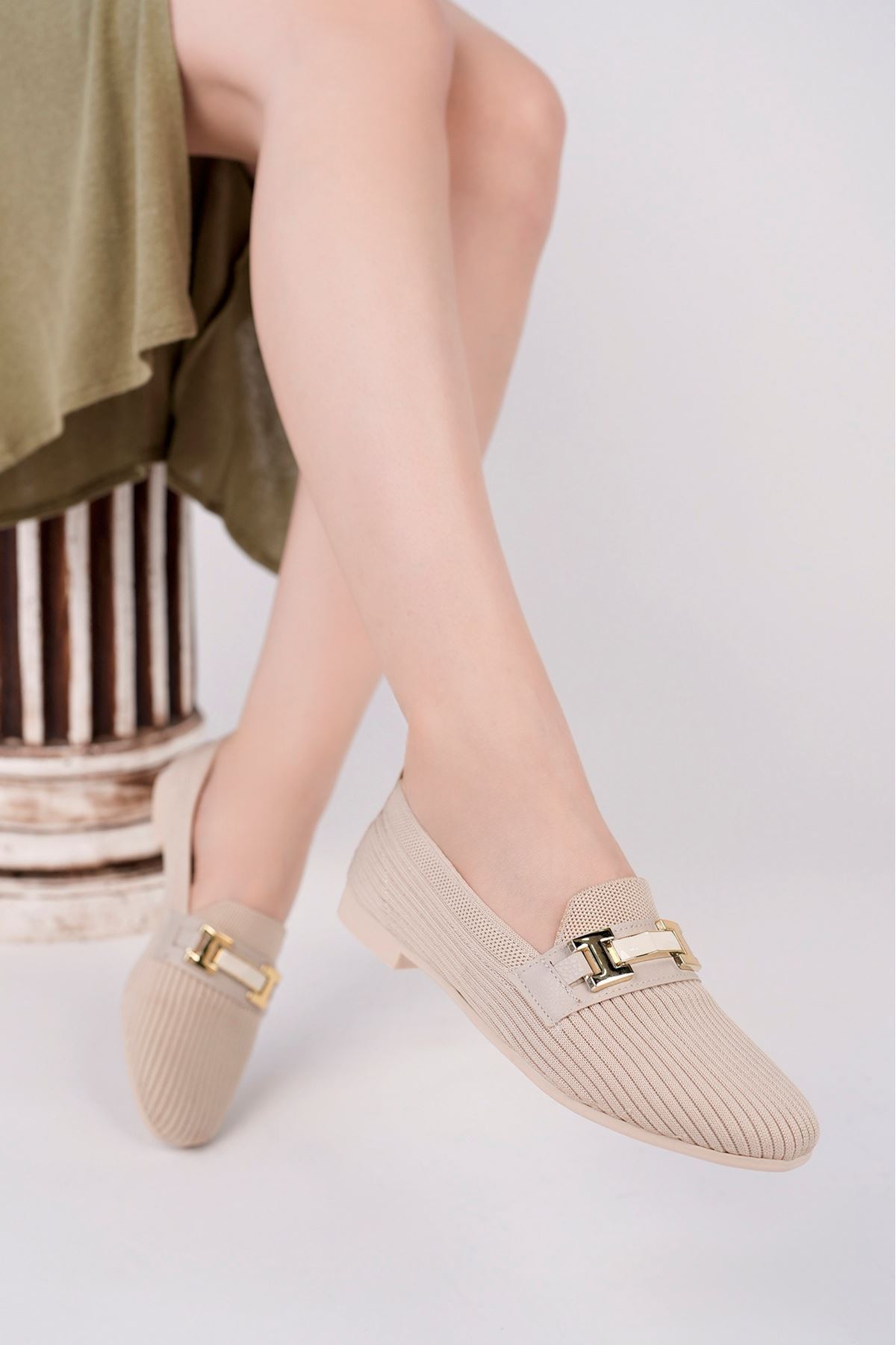 Topan Kalıp Krem Tokalı Triko Ayakkabı