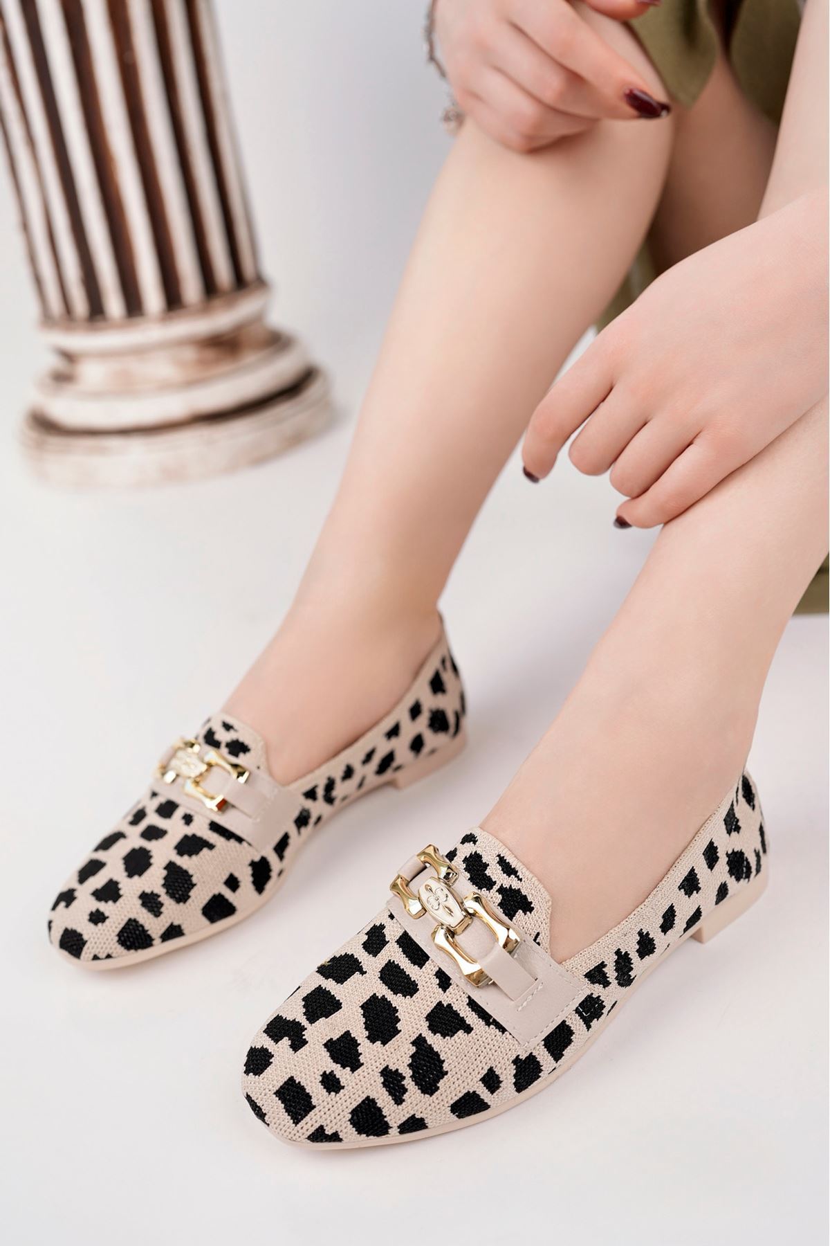 Topan Kalıp Siyah Garnili Krem Tokalı Triko Ayakkabı