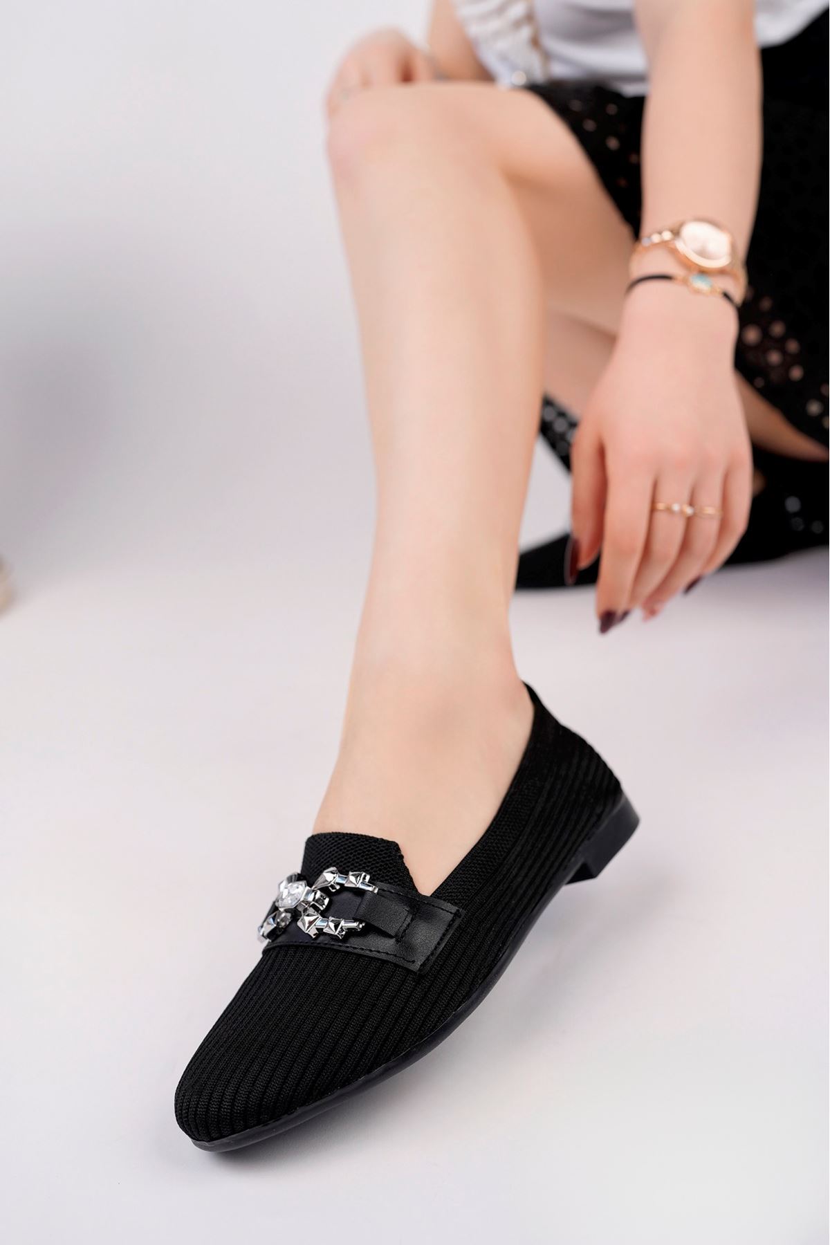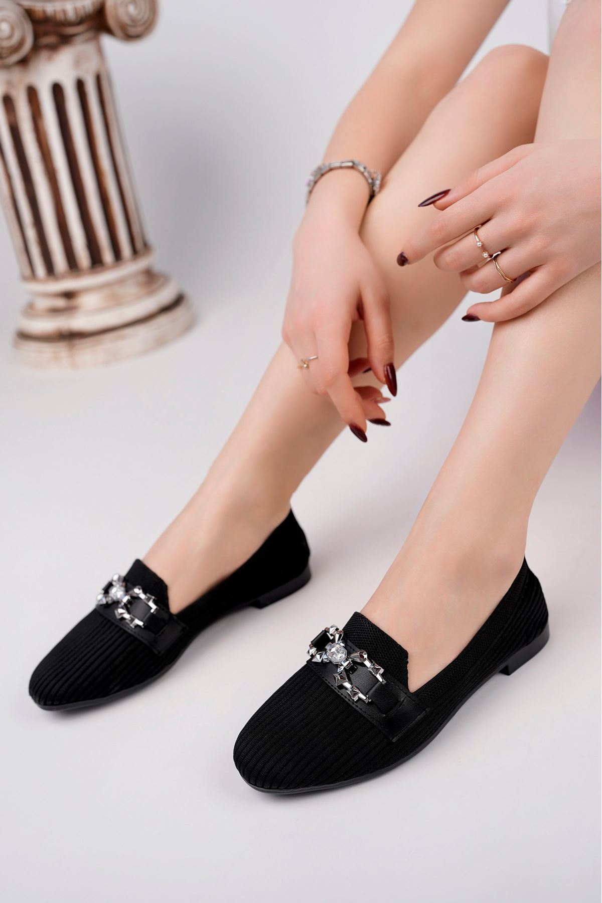 Topan Kalıp Siyah Tokalı Triko Ayakkabı