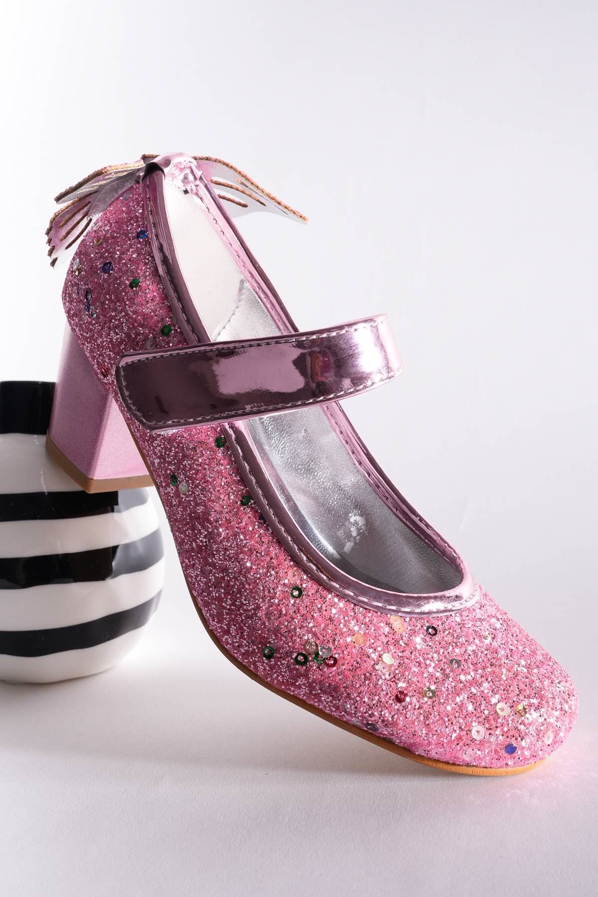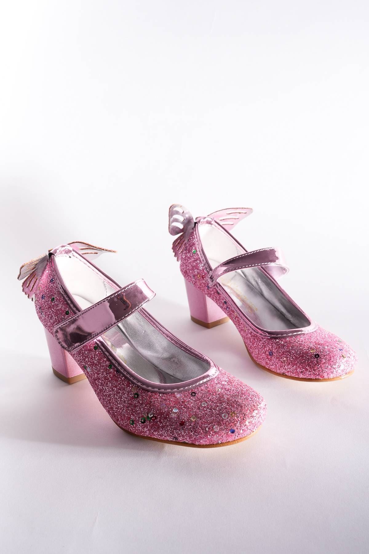 Topuklu Arkası Kelebekli Pembe Taşlı Ayakkabı