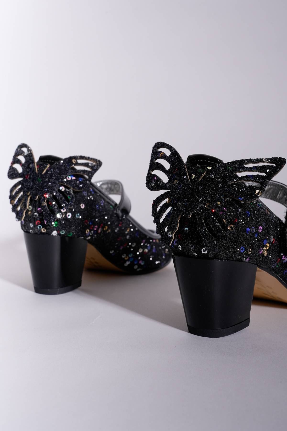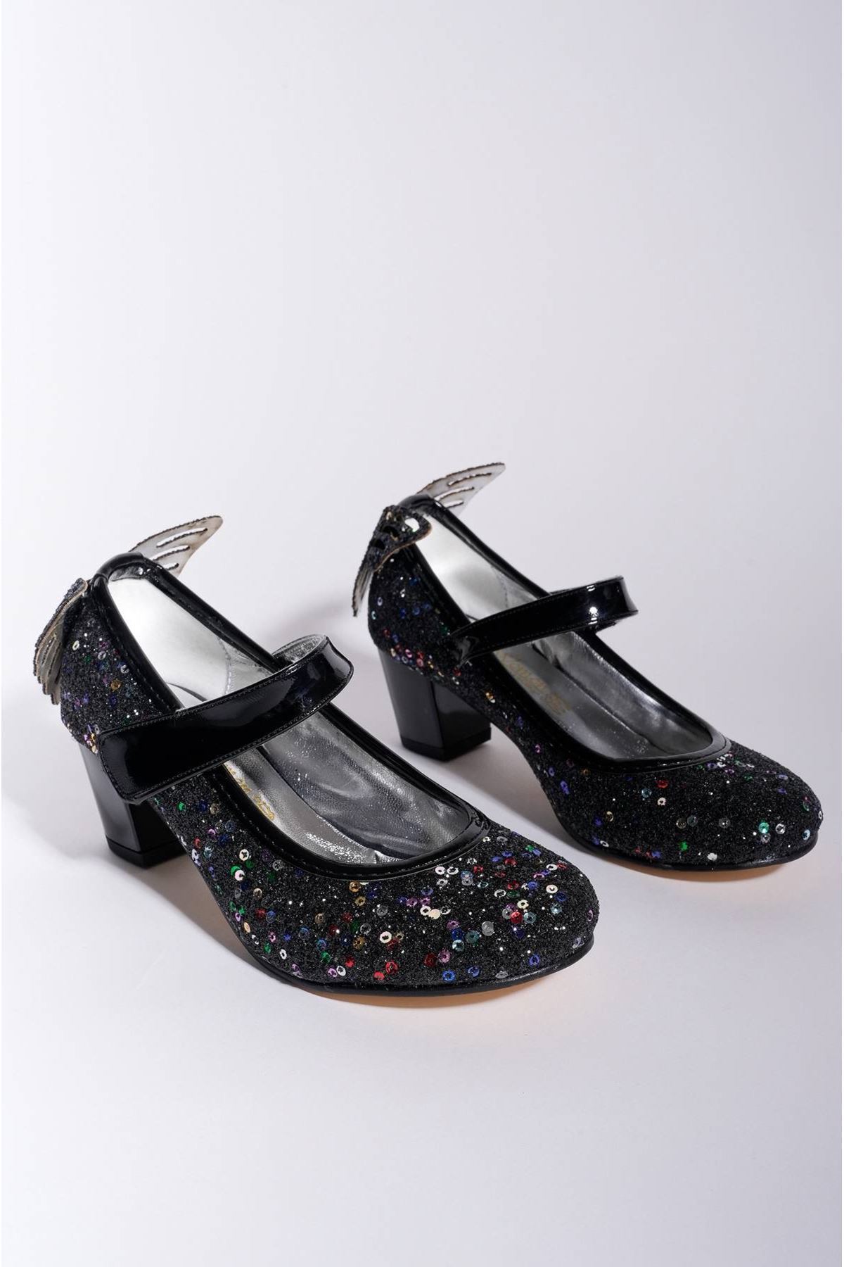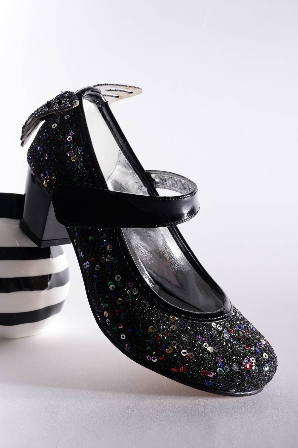 Topuklu Arkası Kelebekli Siyah Taşlı Ayakkabı