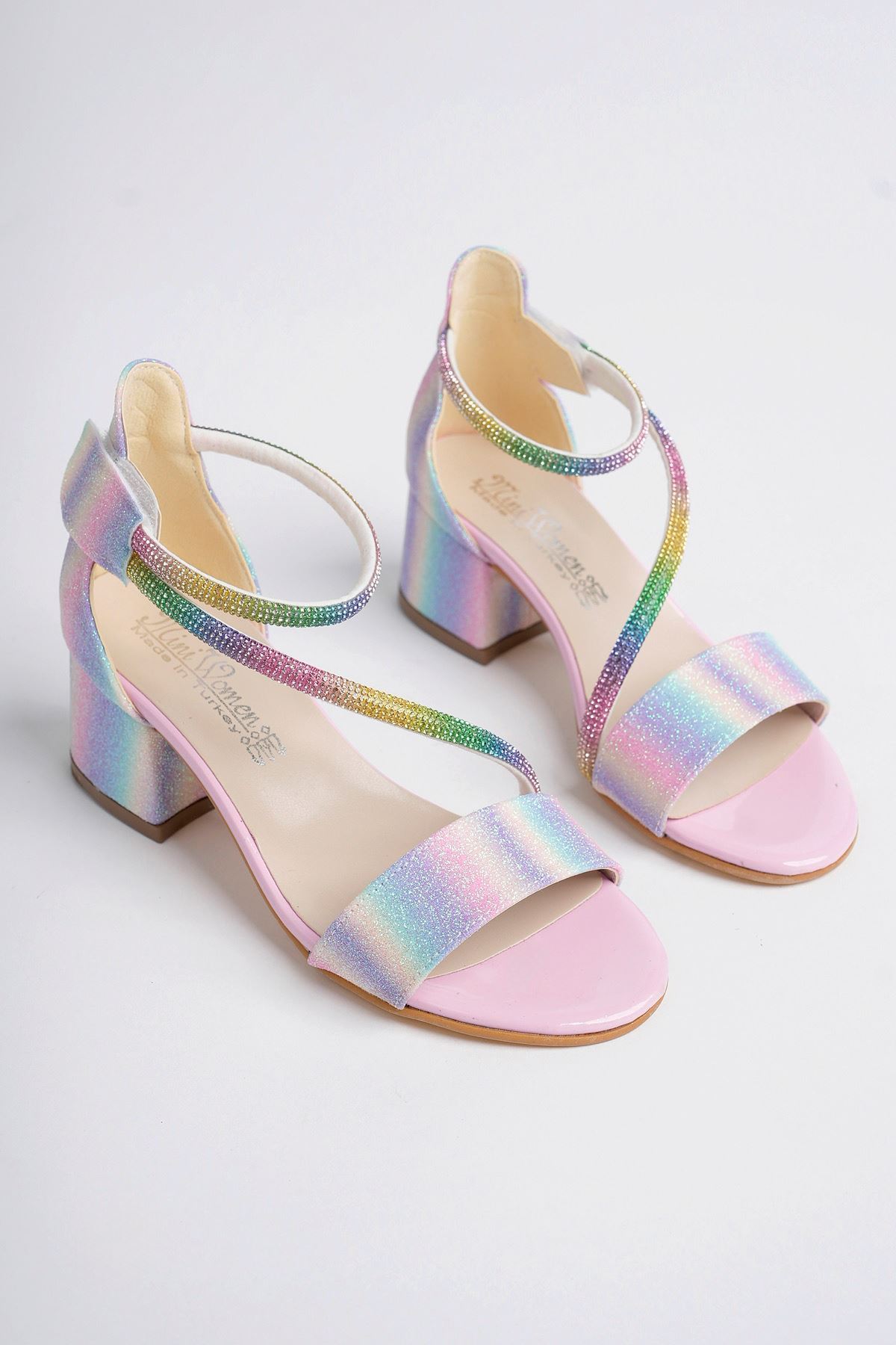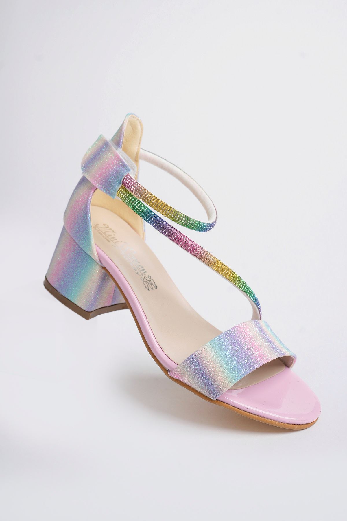 Topuklu Biyesi Taşlı Gökkuşağı Kız Çocuk Ayakkabı