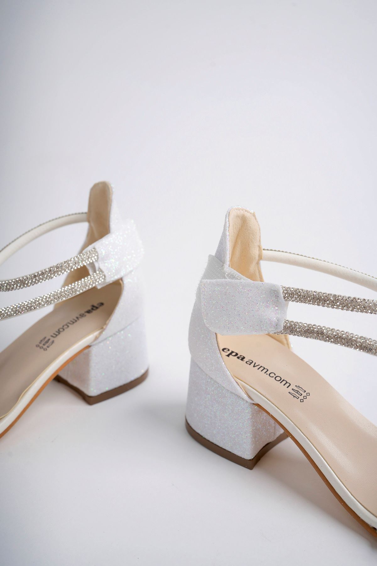 Topuklu Biyesi Taşlı Sedef Kız Çocuk Ayakkabı
