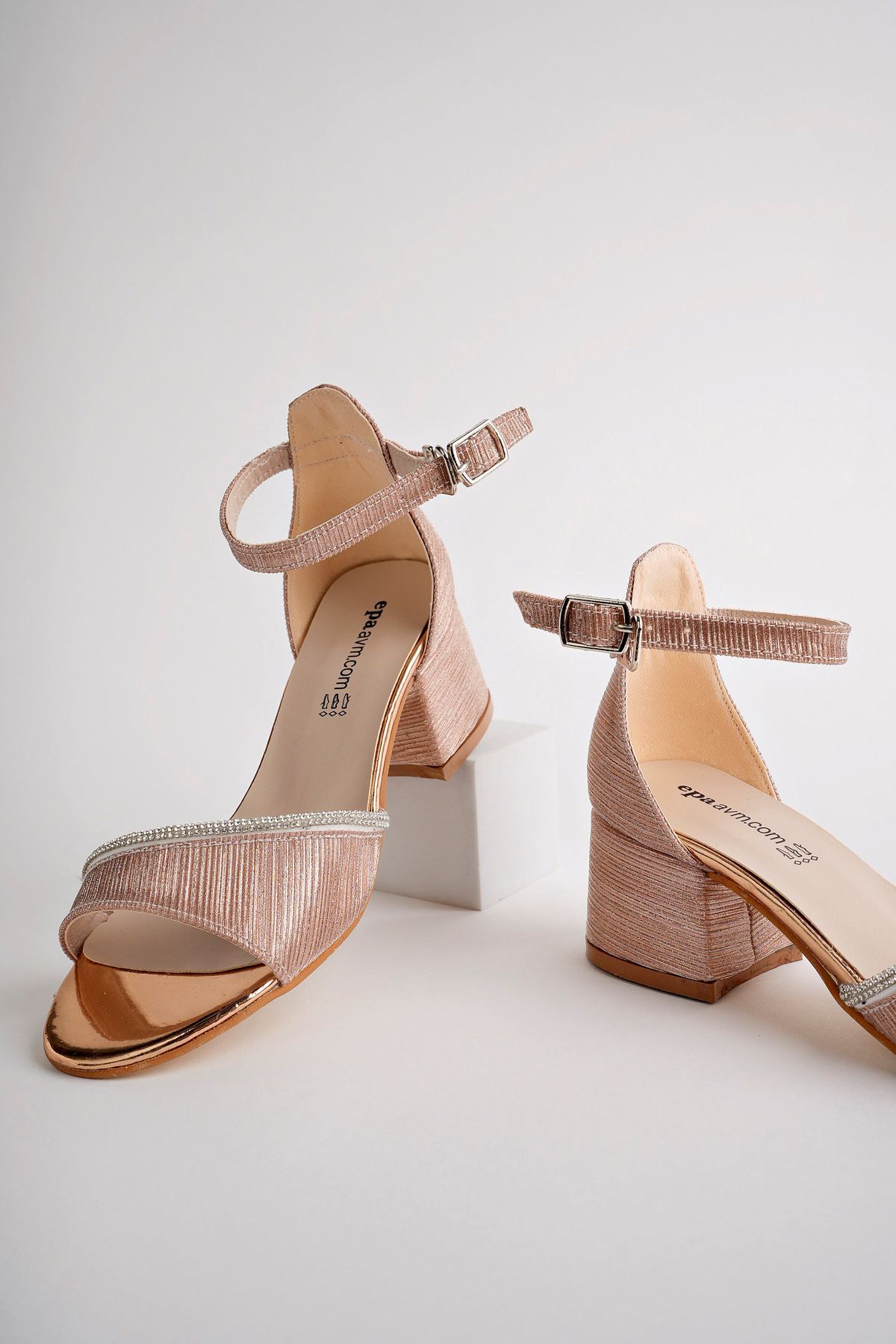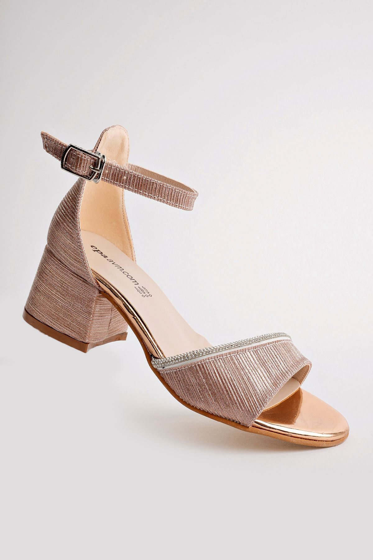 Topuklu Tek Bant Taş Biyeli Bakır Kız Çocuk Ayakkabı