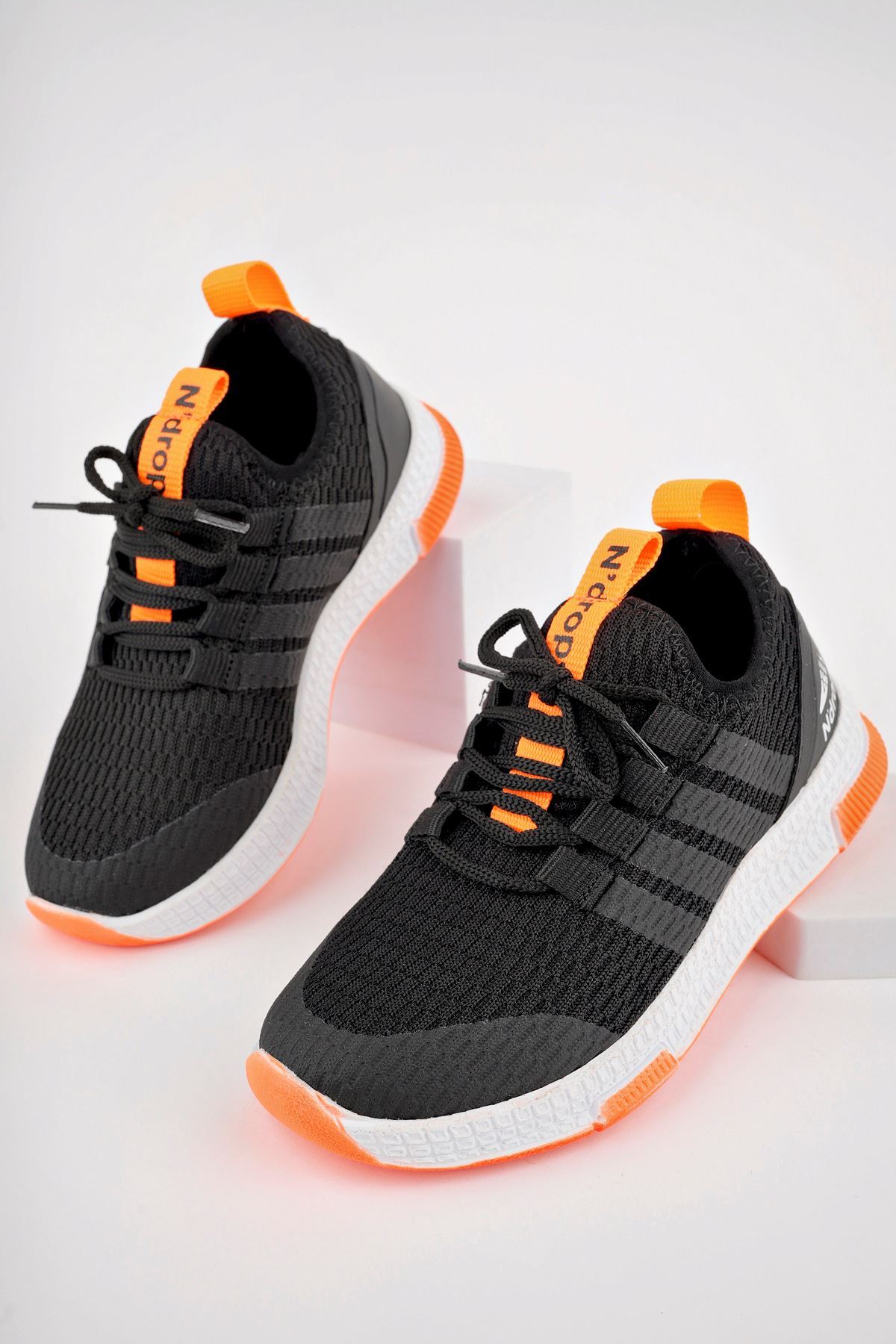 Turuncu Garnili Siyah Çocuk Spor Ayakkabı