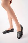 Dolgu Taban Taşlı Siyah Kadın Ayakkabı
