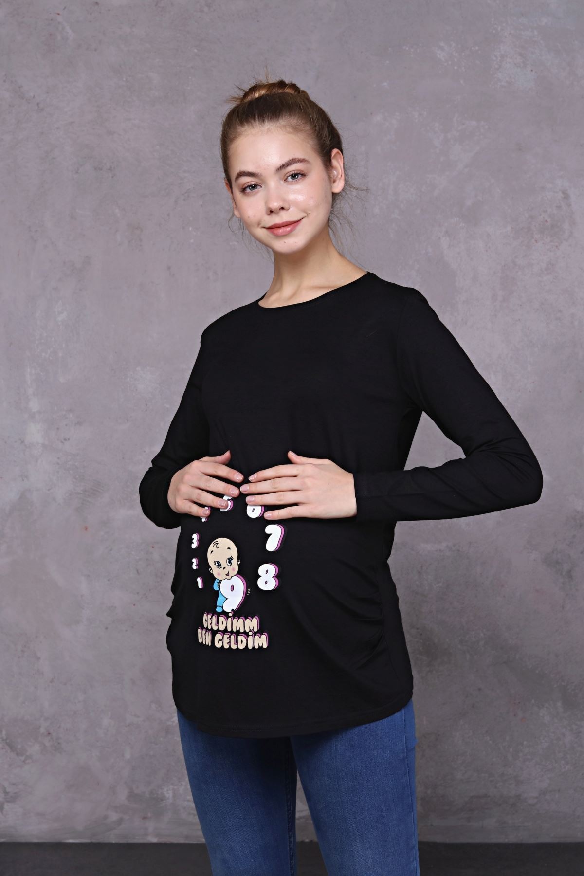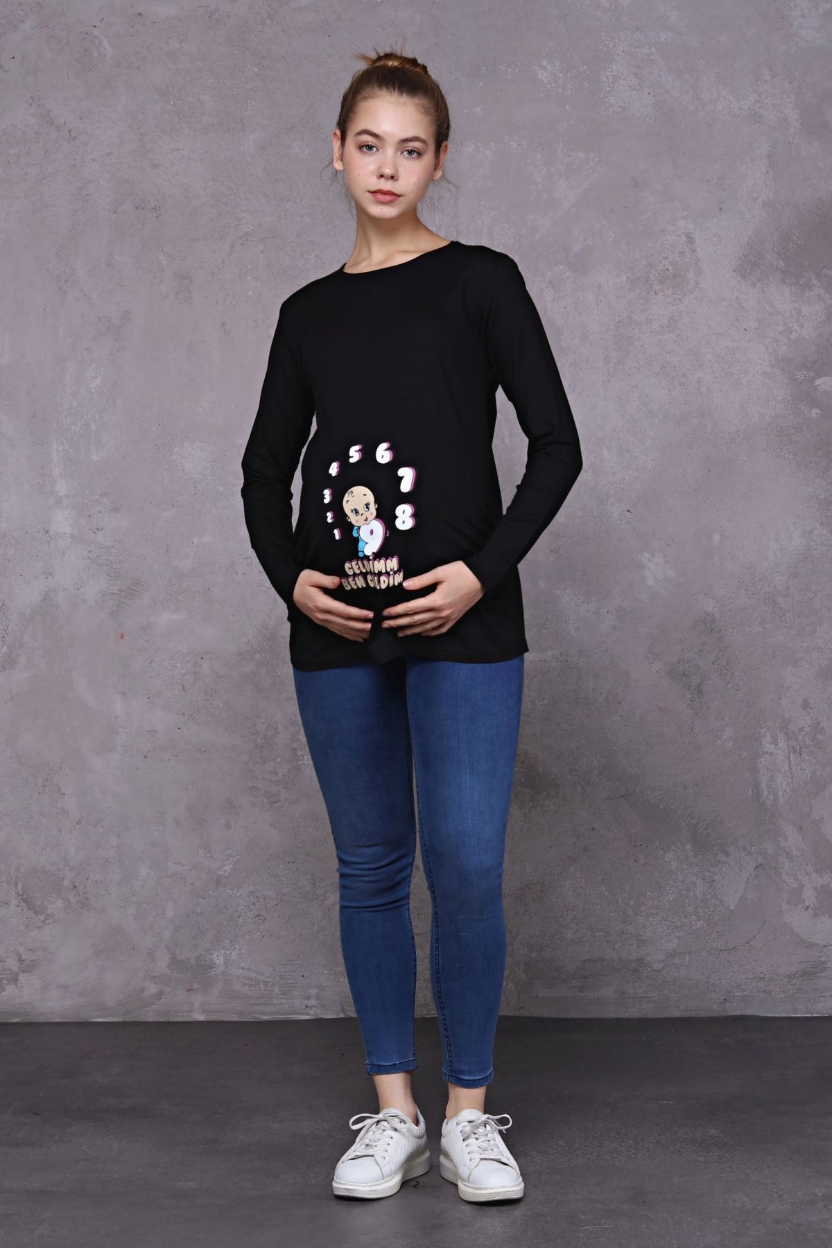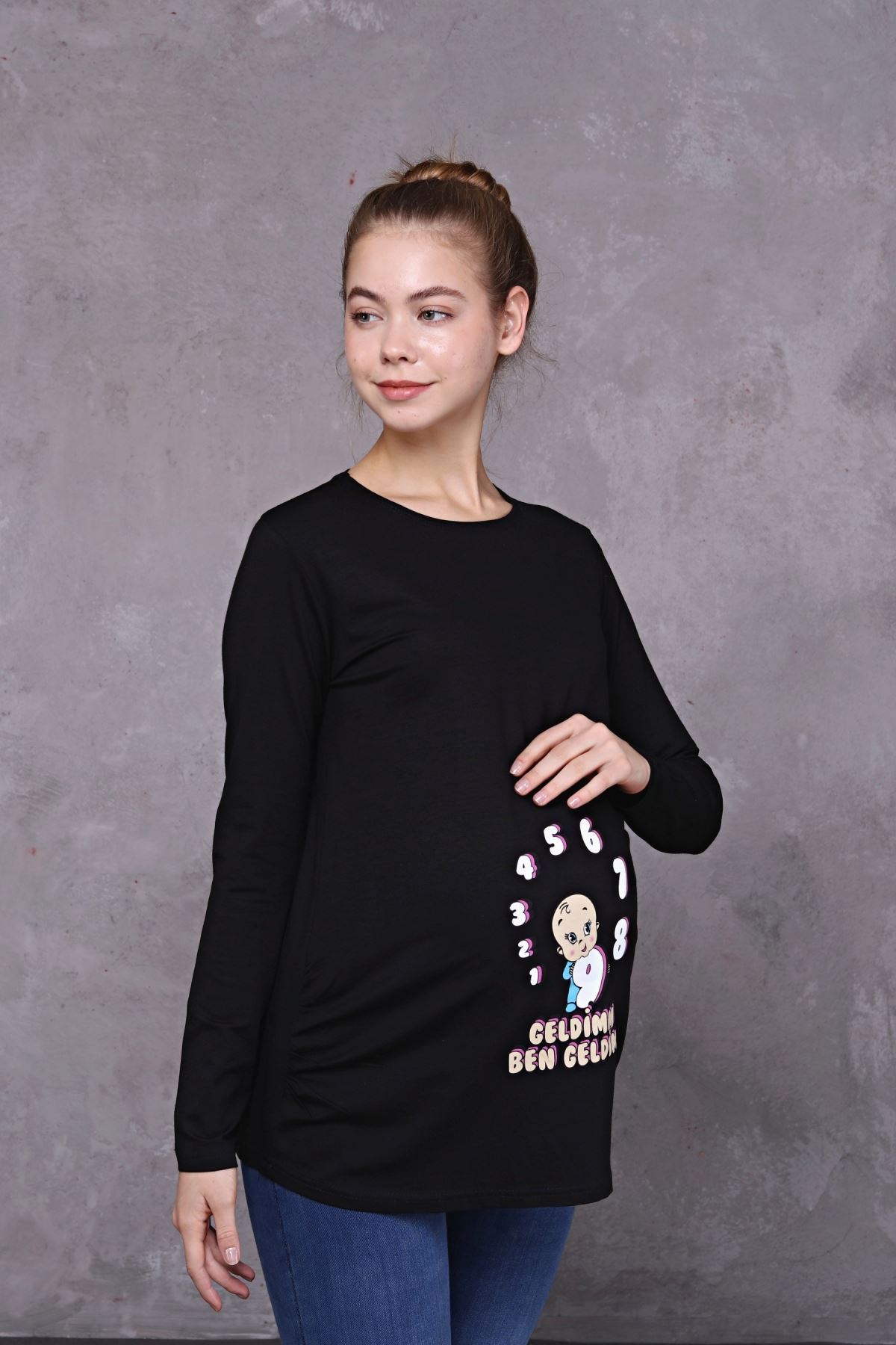 Uzun Kollu Baskılı Hamile Tişört