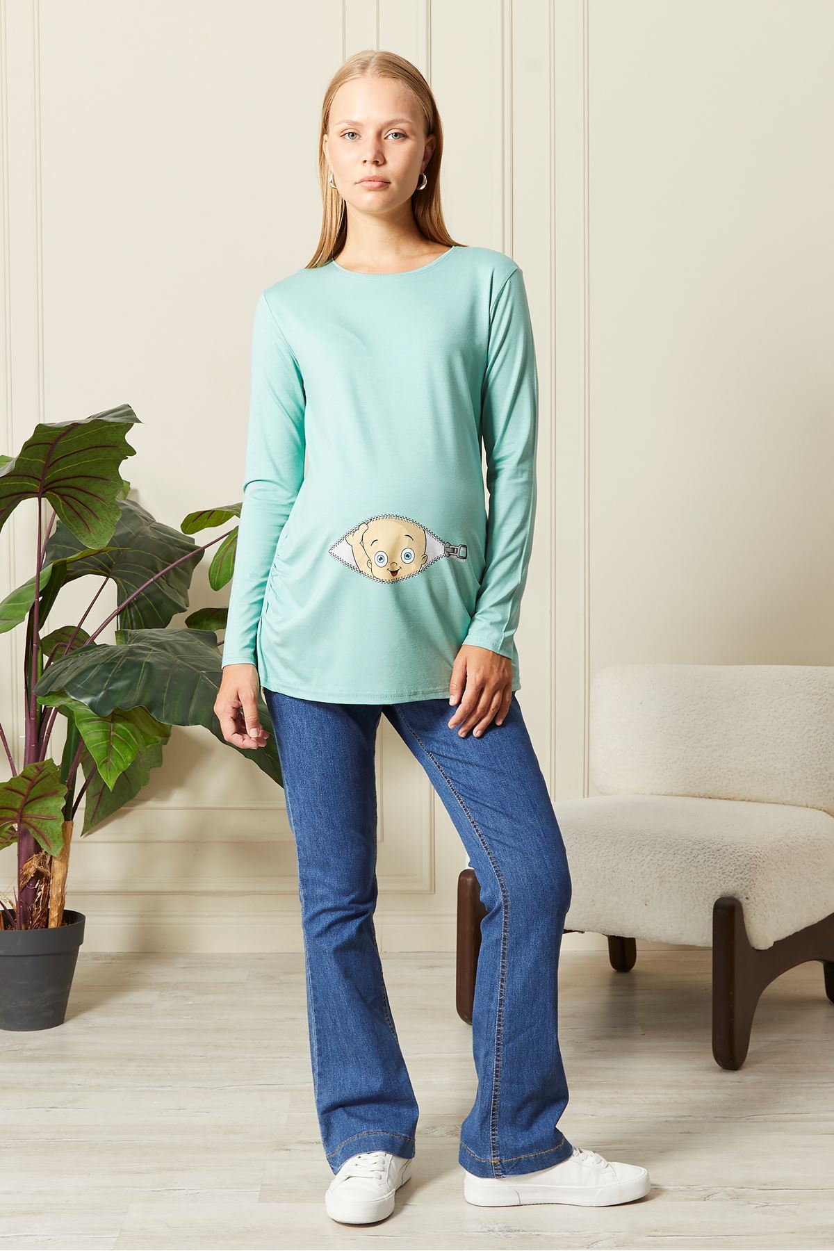 Uzun Kollu Baskılı Hamile Tişört