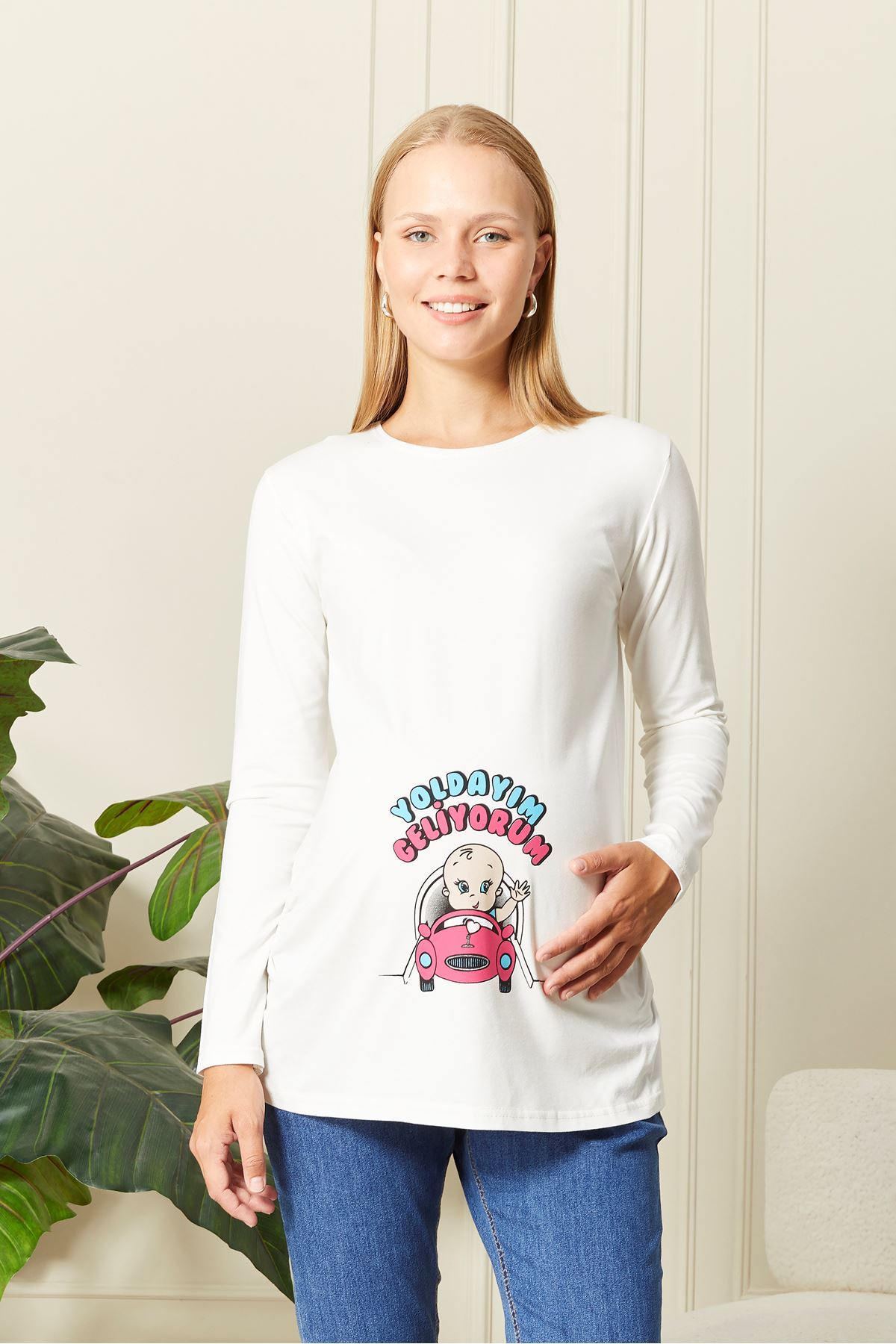 Uzun Kollu Baskılı Hamile Tişört