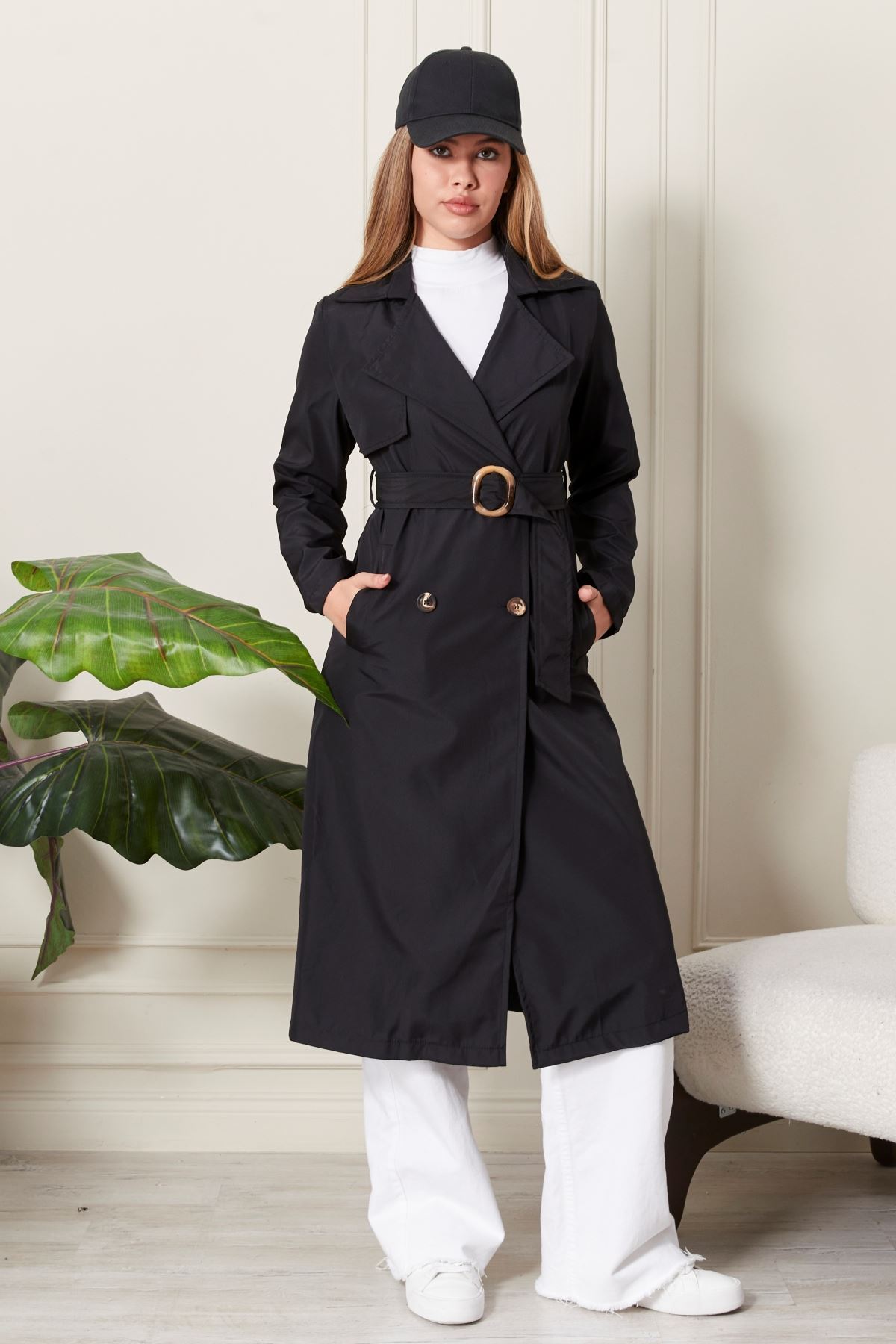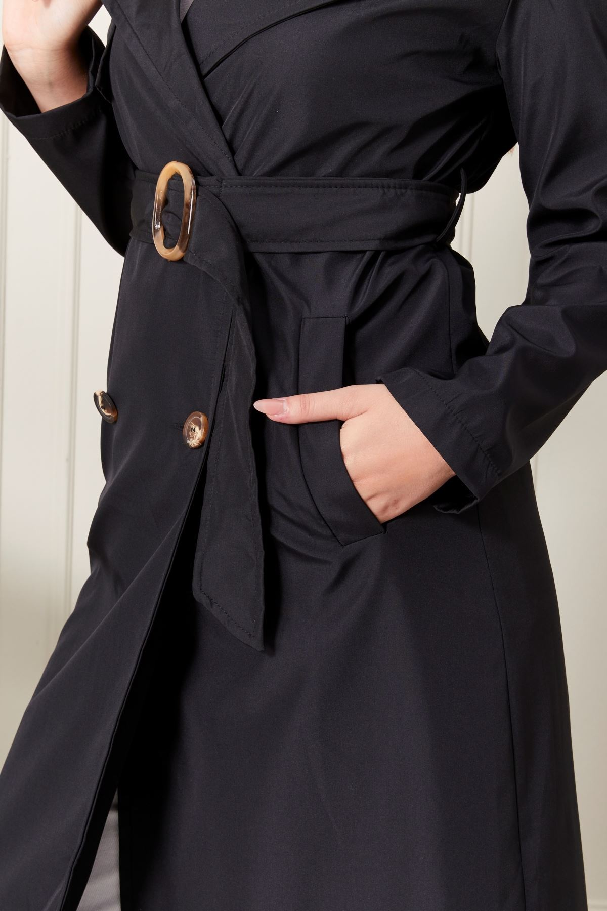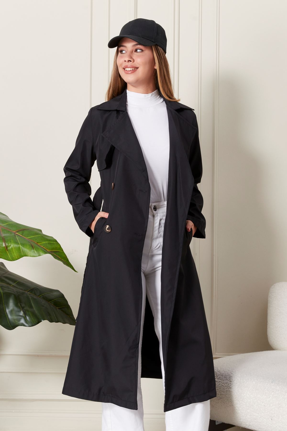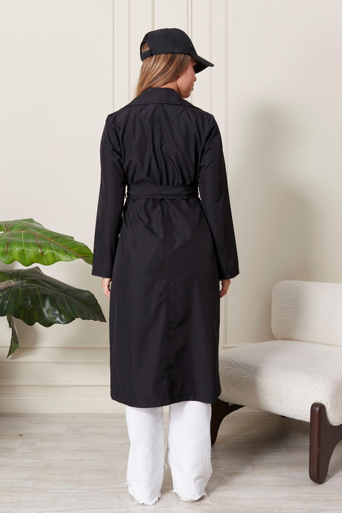 Uzun Siyah Kadın Trençkot
