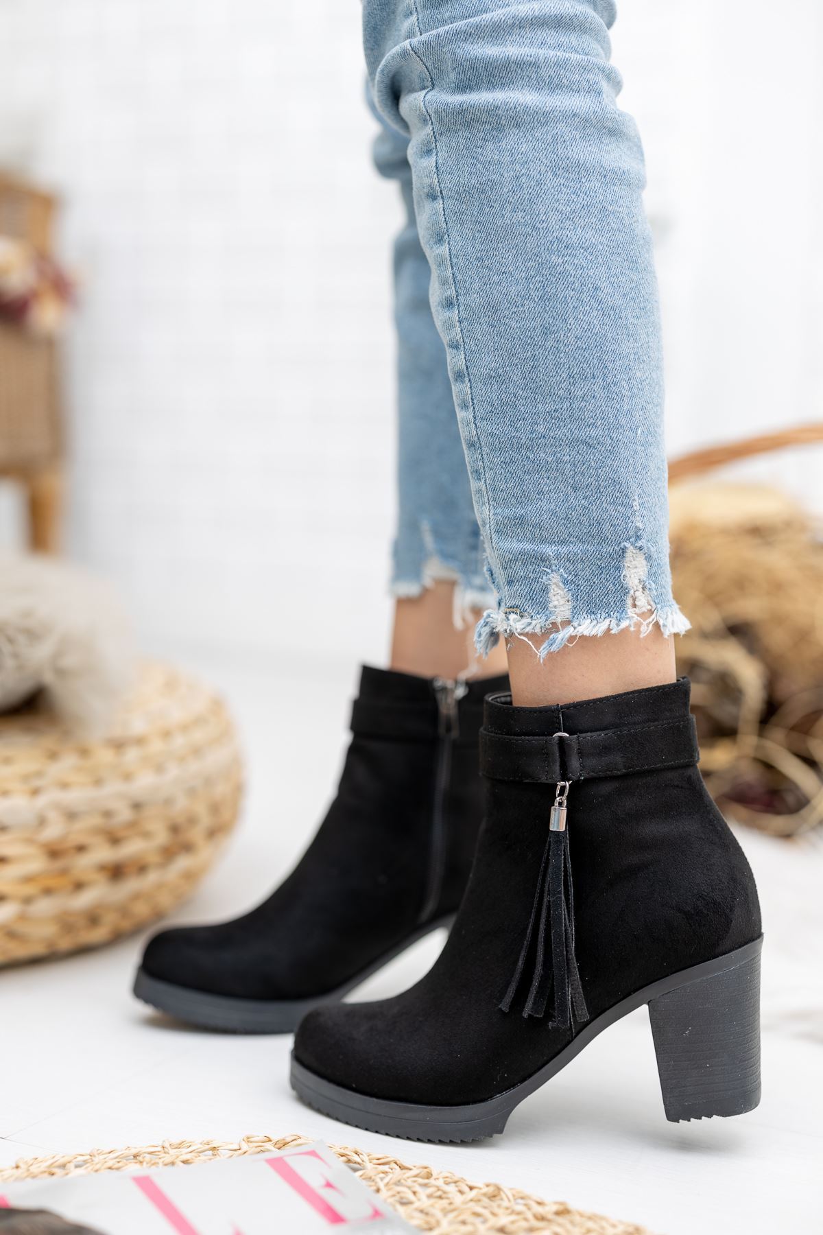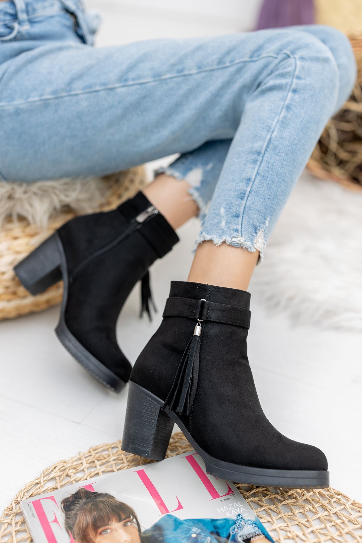 Yüksek Taban Püsküllü Siyah Süet Kadın Bot